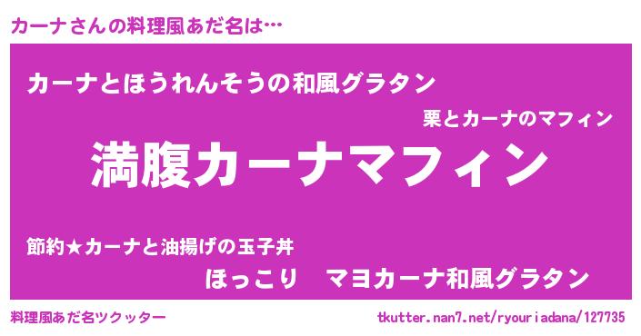 | 意味不明あだ名 | 『永久保存カーナ』『なめこ科カーナ属』 |