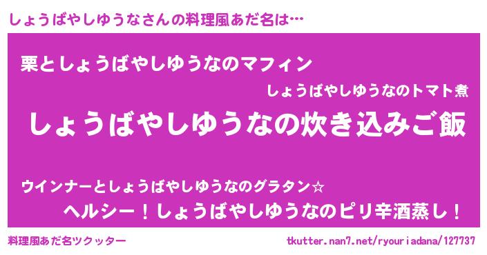 | 男性向けラノベタイトル風あだ名 | 『うちのしょうばやしゆうなが世界を掌握している!』 |