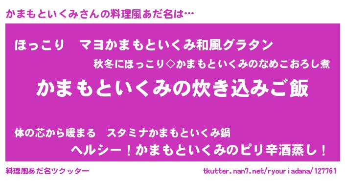 | 意味不明あだ名 | 『住所不定無職かまもといくみ(43歳)』 |