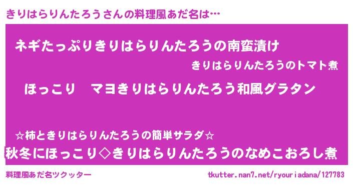 | 意味不明あだ名 | 『住所不定無職きりはらりんたろう(53歳)』 |