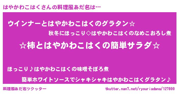 | 意味不明あだ名 | 『はやかわこはくフォーエバー』 |