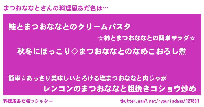 | 男性向けラノベタイトル風あだ名 | 『まつおななとに滅ぼされるだけの簡単なお仕事です』 |