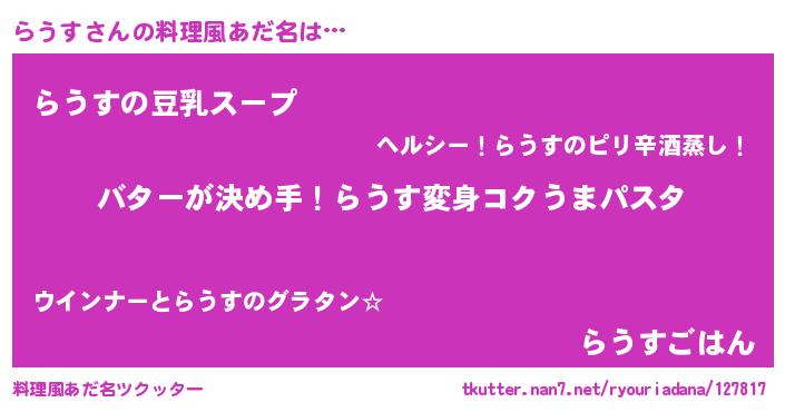 | ヘコむあだ名 | 『らうお』『牛乳』『らうす(小並感)』 |