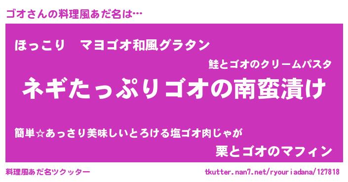 | ポケモン風あだ名 | 『ゴオチュウ』『ゴーオイ』 |
