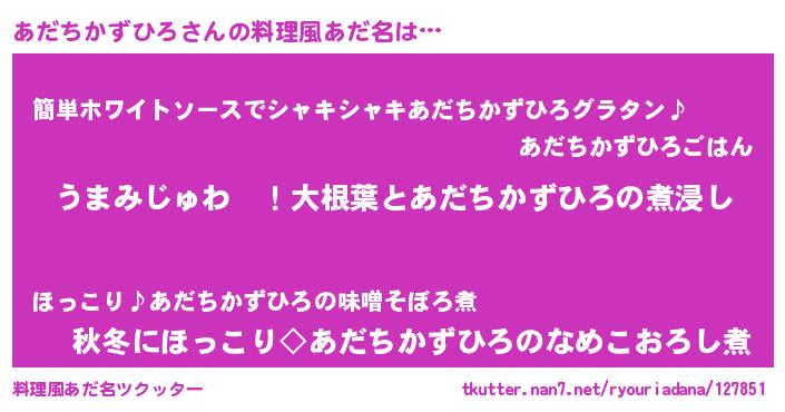 | ポケモン風あだ名 | 『アダチダネ』『ヒアダチカズヒロ』 |