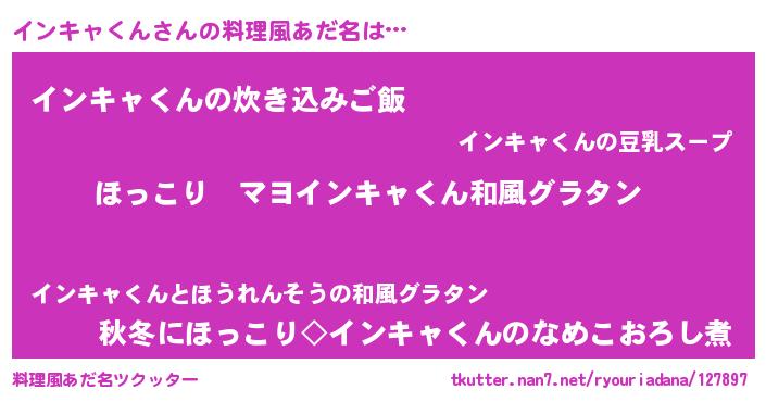 | 男性向けラノベタイトル風あだ名 | 『この素晴らしい世界にインキャくんを!』 |