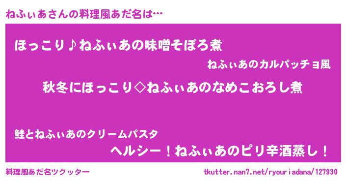 | 男性向けラノベタイトル風あだ名 | 『ねふぃあに滅ぼされるだけの簡単なお仕事です』 |