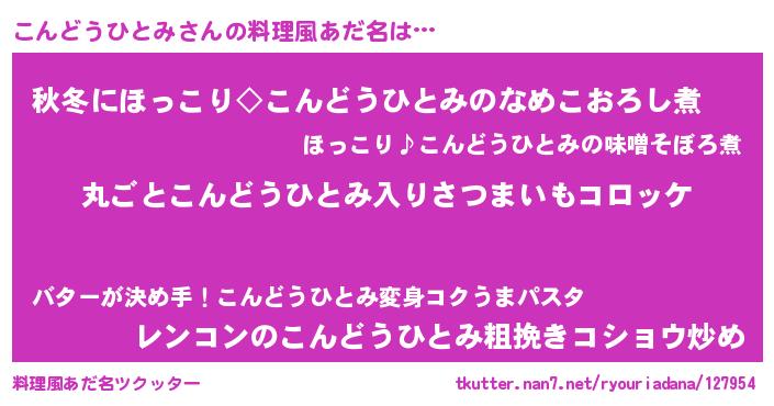 | 意味不明あだ名 | 『住所不定無職こんどうひとみ(7歳)』 |