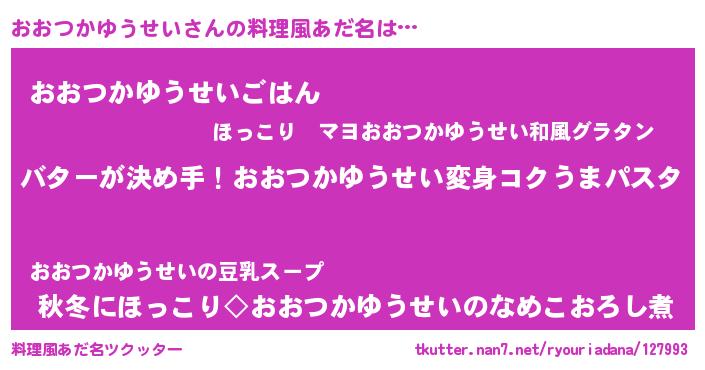 | 男性向けラノベタイトル風あだ名 | 『ノーゲーム・ノーオオツカユウセイ』 |