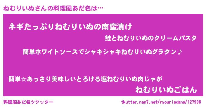 | 恥ずかしいあだ名 | 『ネムリンリン』『プリティーねむりいぬ』 |