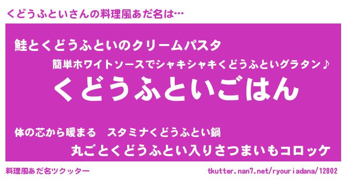 | ヒーロー風カッコイイあだ名 | 『愛の使者くどうふとい』『仮面クドダー』 |