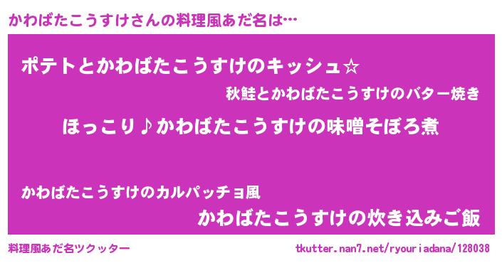 | ヒーロー風カッコイイあだ名 | 『スーパーカワバタコウスケ』 |