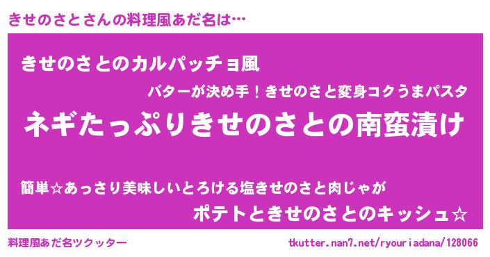 | ヘコむあだ名 | 『きせにゅー』『きせぷりん』 |
