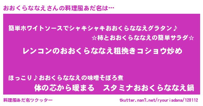 | 意味不明あだ名 | 『自称おおくらななえ』 |