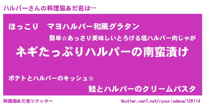 | 男性向けラノベタイトル風あだ名 | 『ハルパーアートオンライン』 |