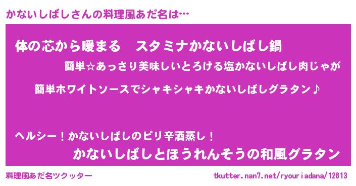 | 胡散臭い通販商品みたいなあだ名 | 『全米が絶賛したサプリメント…その名も「かないしばし」』 |