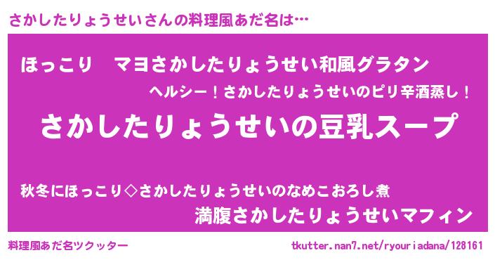 | 女子向けラノベタイトル風あだ名 | 『さかしたりょうせいは平凡を望む』 |