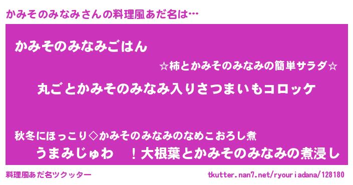 | 男性向けラノベタイトル風あだ名 | 『この素晴らしい世界にかみそのみなみを!』 |