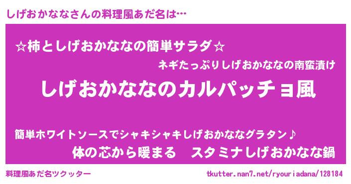 | 意味不明あだ名 | 『住所不定無職しげおかなな(71歳)』 |