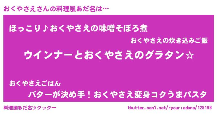 | 意味不明あだ名 | 『おくやさえフォーエバー』 |