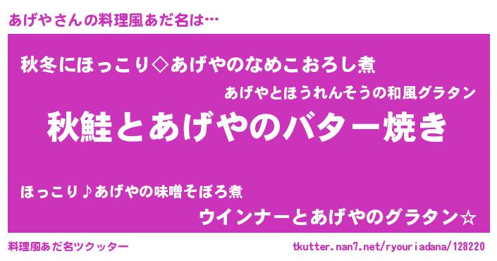 | ヘコむあだ名 | 『あげや(小並感)』『なまこ酢』 |