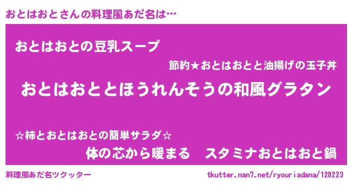 | 胡散臭い通販商品みたいなあだ名 | 『伝統あるサプリメント…その名も「おとはおと」』 |