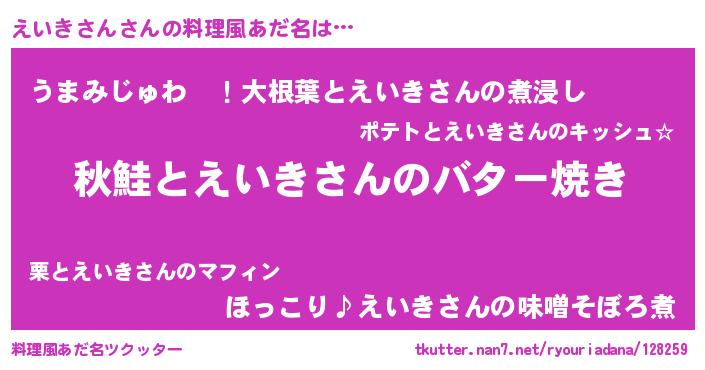 | 意味不明あだ名 | 『永久保存えいきさん』『自称えいきさん』 |