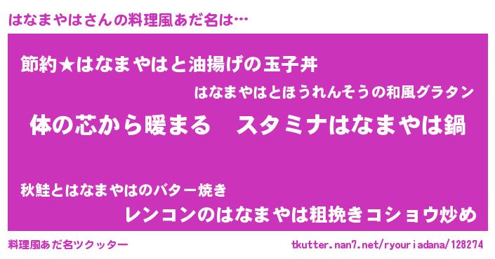 | 欧米人風あだ名 | 『はなまやはクリステル』 |
