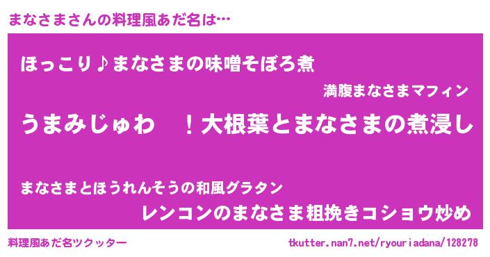 | ヒーロー風カッコイイあだ名 | 『ウルトラまなさまマン』『ネオマナサマ』 |