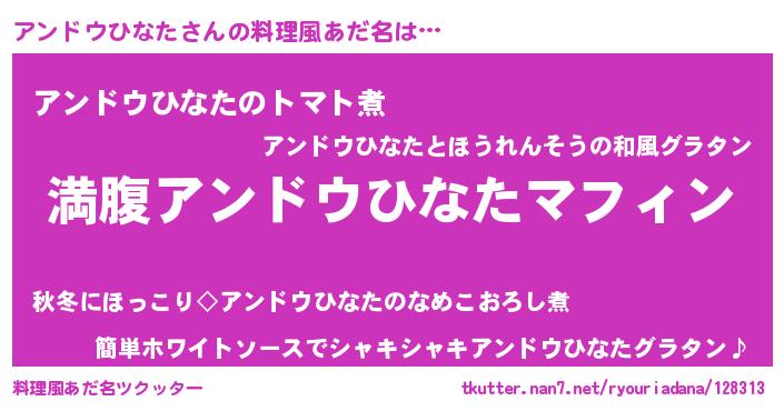 | 意味不明あだ名 | 『永久保存アンドウひなた』 |