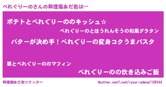 | ヘコむあだ名 | 『ぺれを』『豆乳』『ぺれもー』 |