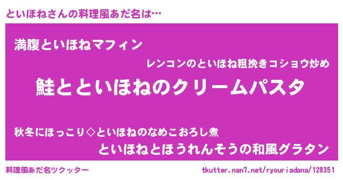 | ヘコむあだ名 | 『といほね(笑)』『牛乳』『といを』 |