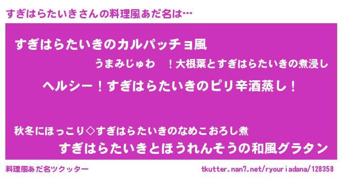| 意味不明あだ名 | 『自称すぎはらたいき』 |
