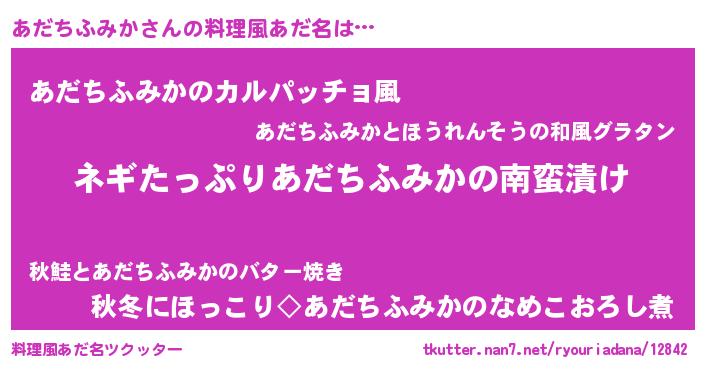 | ヘコむあだ名 | 『あだにー』『あだちふみか(笑)』 |