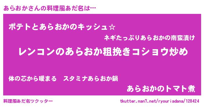 | 意味不明あだ名 | 『自称あらおか』『ペロリンあらおか』 |