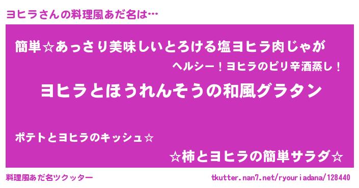 | ヘコむあだ名 | 『ヨヒラ(遠い目)』『ヨヒお』『豆乳』 |
