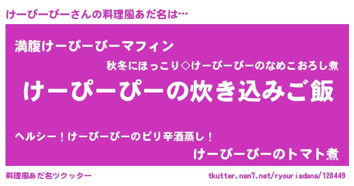 | 意味不明あだ名 | 『永久保存けーぴーぴー』 |