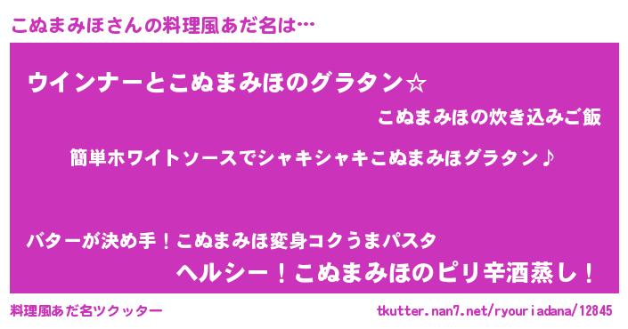 | 女子向けラノベタイトル風あだ名 | 『こぬまみほ様がみてる』 |