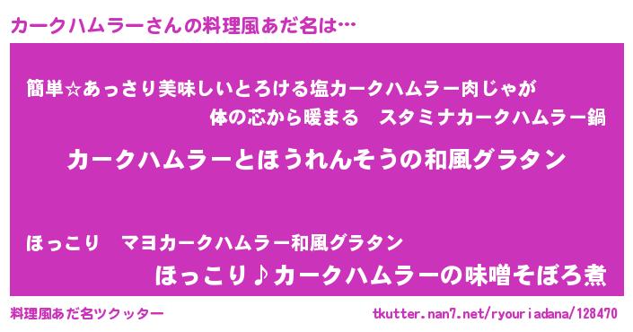 | 可愛いあだ名 | 『カーぷりん』『カークハムラーママ』 |