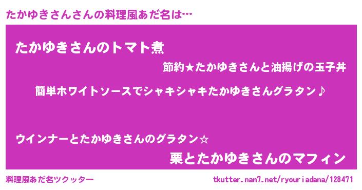 | 男性向けラノベタイトル風あだ名 | 『たかゆきさんの嫁は女の子じゃないと思った?』 |