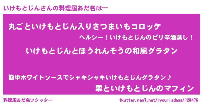 | 男性向けラノベタイトル風あだ名 | 『いけもとじん~年齢イコール彼女いない歴の魔法使い~』 |