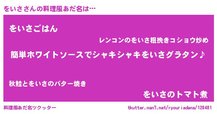 | 女子向けラノベタイトル風あだ名 | 『をいさ様がみてる』『をいさの契約王妃』 |