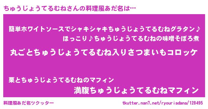| 意味不明あだ名 | 『住所不定無職ちゅうじょうてるむね(68歳)』 |