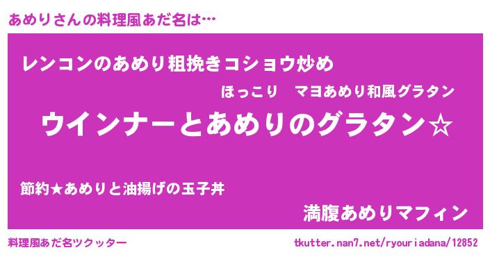 | ヘコむあだ名 | 『豆乳』『あめり(爆)』『あめもー』 |