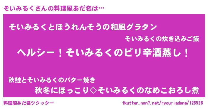 | 意味不明あだ名 | 『自称そいみるく』『永久保存そいみるく』 |