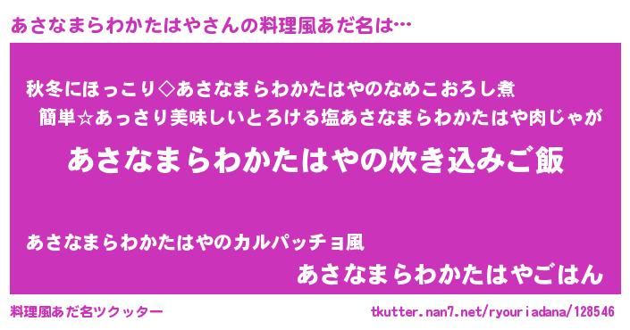 | ヘコむあだ名 | 『あさなまらわかたはや(苦笑)』『あさもー』 |