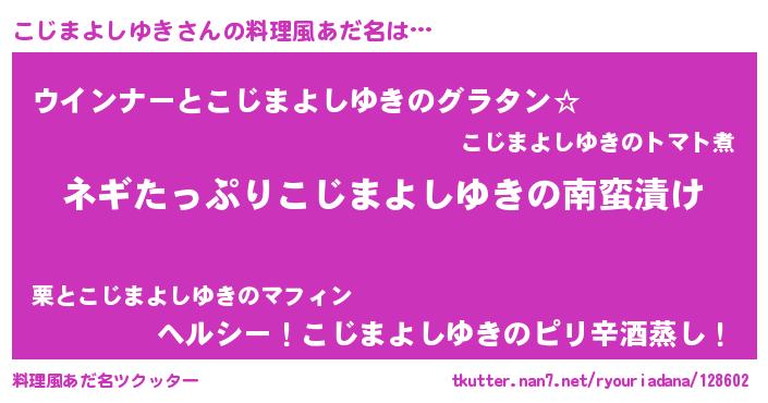 | 恥ずかしいあだ名 | 『プリティーこじまよしゆき』『こじちん』 |
