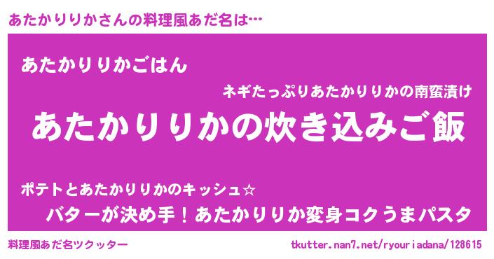 | 欧米人風あだ名 | 『あたかりりか・ステッグマイヤー』 |