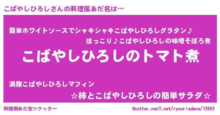 | 男性向けラノベタイトル風あだ名 | 『おまえをオタクにしてやるから、俺をこばやしひろしにしてくれ! 』 |