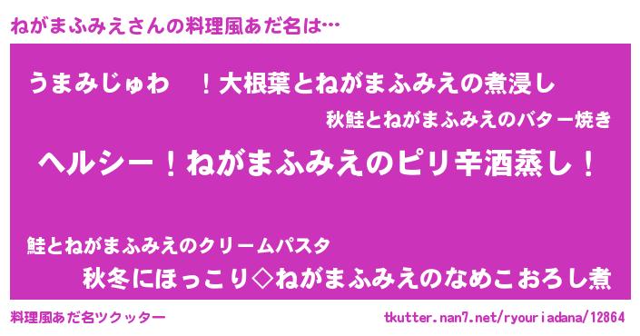 | 意味不明あだ名 | 『自称ねがまふみえ』 |